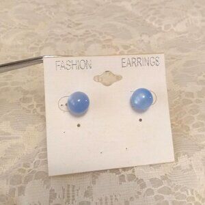 Vintage Women’s Classic Light Blue Beads Round Stud Earrings Timeless VTG Jewelry