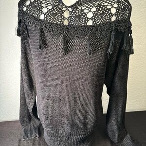 Vintage Women’s Crochet Knit Sweater With Embroidery Stunning!