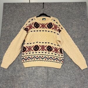 Vintage Womens Fair Isle Knit Sweater Cream Handknit Shetland Wool Size L