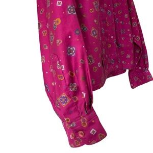 Vintage Women’s Pleated Button Up Shirt Size 14 Hot Pink Paisley Long Sleeves
