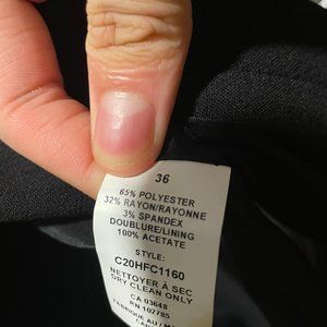 9/10 Condition, Rarely worn. 65% Polyester. 32% Rayon. 3% Spandex. Doublure/lining. 100% Acetate.