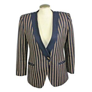 Vintage Womens Wool Blazer Jacket Size 2 Blue One Button Lined Brettons Petites