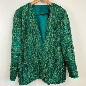 Vintage Women’s XL Green Embellished Jacket Coat Blazer Christmas Holiday NYE