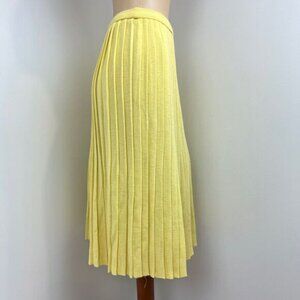 Vintage Women's XS Small High Waisted butter Yellow Accordion Pleated Midi Skirt
