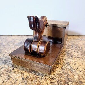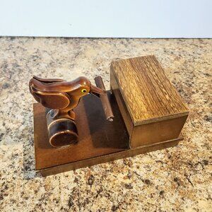 Vintage Wood Cigarette Dispenser Box, Mechanical Wooden Box Bird Bobbing, Works Great!