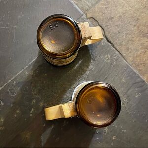 Spice up your kitchen with a touch of retro charm with this vintage 3” pair of wood handled glass beer stein salt and pepper shaker set. A delightful nod to the 1970s, this set captures the essence of the era with its brown color scheme and beer mug pattern, making it a perfect collectible for any occasion. Lids are plastic.