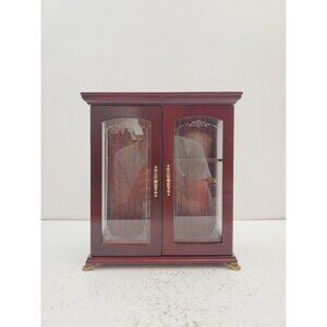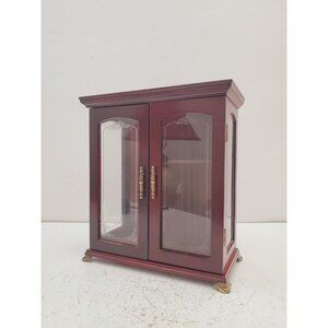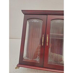 Vintage Wood Glass Cabinet, Trinket Display Case, Wall Mounted, one Shelf, Glass