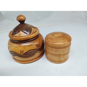 Vintage Wood Hand Turned & Carved Trinket Boxes Set of two