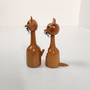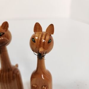 Vintage Wood Long Neck Pair of Siamese Cats 1970s Kitsch Quirky Miniature Cat
