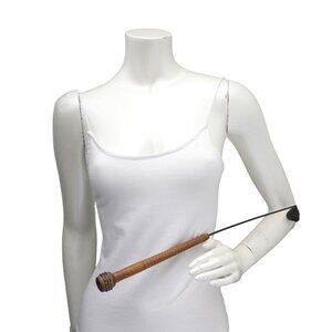 Indulge in the charm of yesteryears with this vintage wood and metal candle snuffer. The long handle design exudes a retro vibe, adding a touch of nostalgia to your lighting ensemble. With a combination of brown and black hues, this candle snuffer is not just a functional tool but also a decorative accent for your living space.