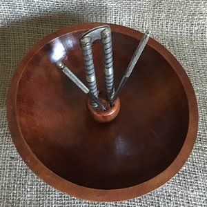 Vintage Wood Nut Bowl with Tools Baribocraft
