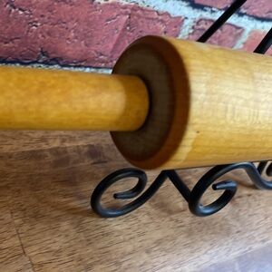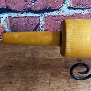 Vintage Wood Rolling Pin in working condition. This one is lovely. It’s a little larger with large handles. It may need refinishing oil before use on food. It’s perfect for home decor piece. A few signs of wear and age. See pics.