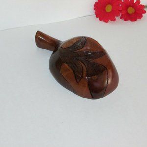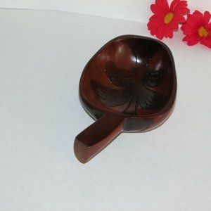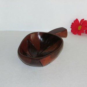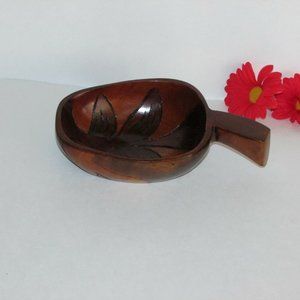 Vintage Wood Snack Serving Bowl With Handle Retro Boho