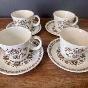 Add a touch of English vintage charm to your kitchen with this beautiful Wood & Sons Burslem cup and saucer set, featuring an intricate brown floral pattern on white ironstone. Made in England, these mid-century pieces are perfect for collectors, vintage enthusiasts, or those looking to enhance their retro kitchen décor.