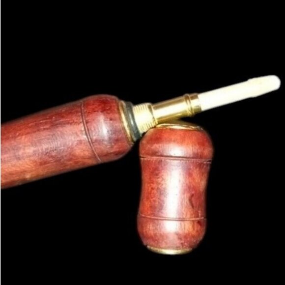 Vintage Wood carved Perfume Oil Dispenser Pen Screw Lid Brass Hardware