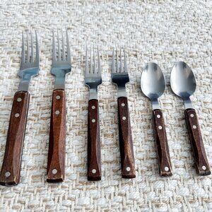 Vintage Wood‑Handle Flatware Set (6 Pc) Japan—Forks & Spoons