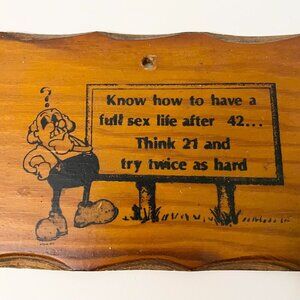 Vintage Wooden Art Bathroom Plaque Joke Sign Made in Canada