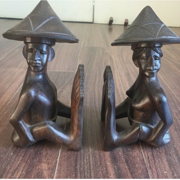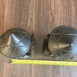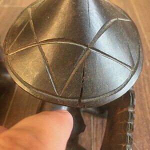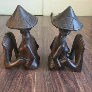 Each one measures approx 8" x 4.5" x 4". There is a small crack in one of the hats--see photo. Minor wear as expected in a vintage item.