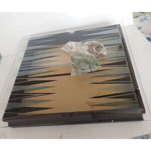 Vintage Wooden Backgammon Game with Glass overlay & Glass Pieces 1970's