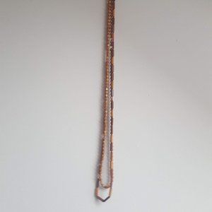 Vintage wooden beaded necklaces, set of 2. They could do with being restrung, as the cord has lost its stretch. Quarter for scale.