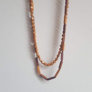 Vintage Wooden Beaded Necklaces, Set of 2