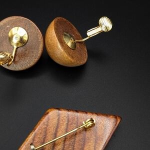 Vintage Wooden Brooch and Earrings Set - C Clasp and Clip ons