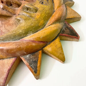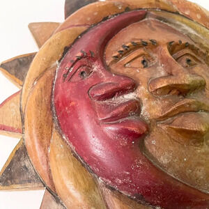 Vintage Wooden Carved Sun Moon Unity Wall Plaque 16 Inch Art