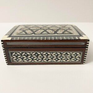 Vintage Wooden Jewelry Box Micro Mosaic Unmarked