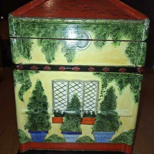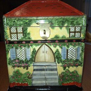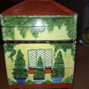 Vintage Wooden Jewelry Trinket Box Hand Painted House