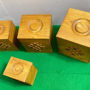 Vintage Wooden Kitchen Canisters Set of 4, Farmhouse Storage, Storage Box