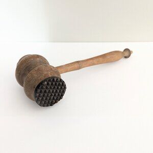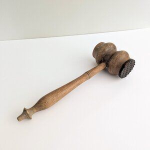 Vintage Wooden Mallet with Metal Head Meat Tenderizer