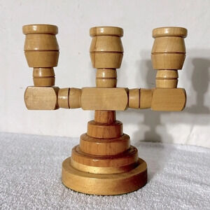 Vintage Wooden Scandinavian 3 Arm Candle Holder Candelabra