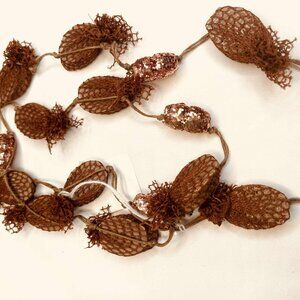 Materials: Natural wood pieces in mesh netting, sequin beads, cord