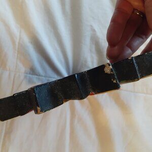 Preowned and gently used condition. 8 inch sun and moon mirror from the 1990s. The mirror part measure 2.5 inches in length and about 2.25 inches in width. Also features painted clouds and stars. Colours are deep blue, yellow, red and green. Has some small areas of wear. Most would not be noticeable if the mirror is in a hanging position. Rustic. Gives boho, witchy, whimsygoth vibes. Made in Indonesia.