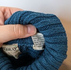 Vintage Woods & Gray Dark Teal Patterned Knit Turtle Neck Women Large Oversized