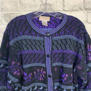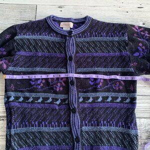 Vintage Woodward's Black Purple Stripe Floral Knit Button Up Cardigan Sweater