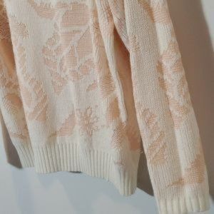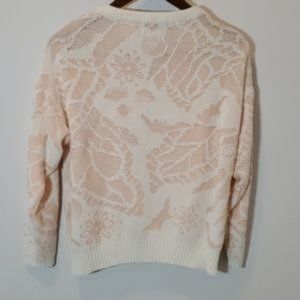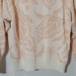Vintage Woodward's Sweater Crew Neckline Textured Floral Knit sweater pink and cream floral pattern 100% acylic made in Taiwan Vintage size see measurement pictures