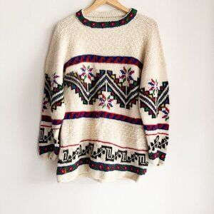 Vintage Wool Angora Blend Southwestern Print Unique Pullover M.