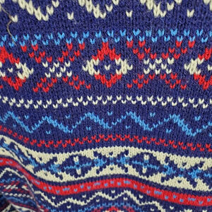 Vintage Wool Apres Ski Sweater 1/2 Zip Blue Red Fairisle Measures M/L