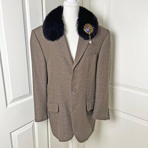 Vintage Wool Blazer w/ Detachable Mobwife Collar & Handmade Brooch, Oversized/XL