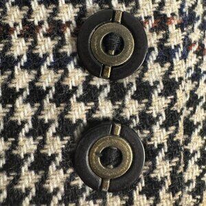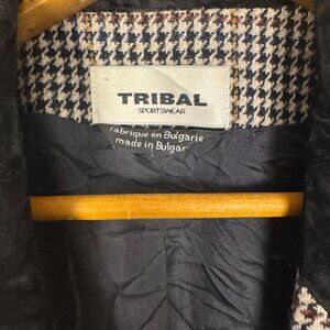 This vintage 90s blazer is a classic academia-inspired piece with a timeless houndstooth pattern and a soft black velvet collar. Made by Tribal Sportswear, this jacket has a structured fit, two-button front, and large patch pockets. It’s fully lined, warm, and perfect for fall and winter layering.