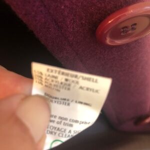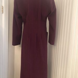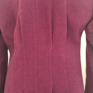 Gorgeous pleating in the back very long dramatic style and tailored shape make this a find. Grape burgundy colour purple lining size 8 or medium. Great with jeans or formal.