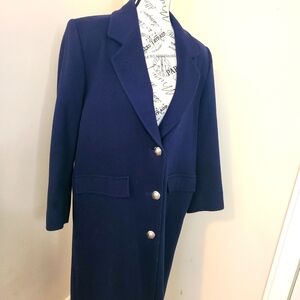Vintage Wool Coat Navy Blue London Fog Long Single Breast Size 10 M