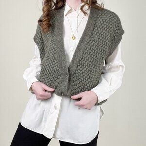 Vintage Wool Honeycomb Knit Oversized Slouchy Fit Sweater Vest Cardigan Handmade