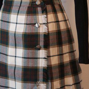 Skirt has been since [blind]hemmed, with brand new cloth covered buttons. Comes with Kilt pin.