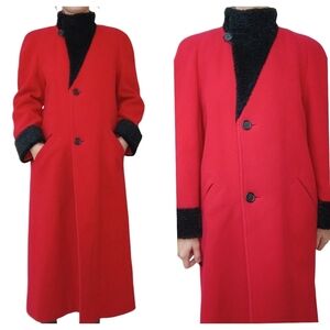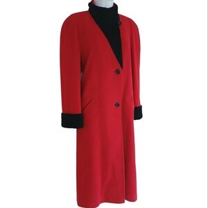 Vintage 100% wool red and black retro long trench coat jacket in size medium.