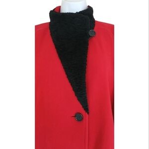 Vintage 100% wool red and black retro long trench coat jacket in size medium.
