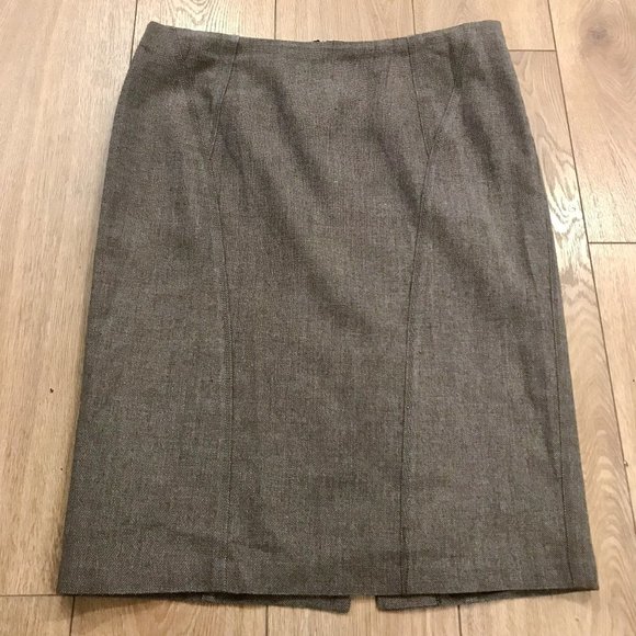 Vintage Wool-Blend Heather Brown Seamed Pencil Skirt - Size 4