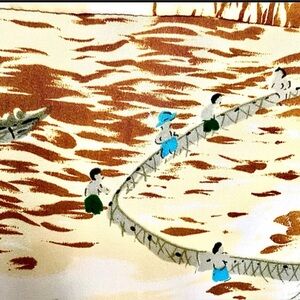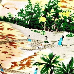 Vintage Woolcrest 50’s Men’s Hawaiian shirt w/palm trees w/populated sandy beach