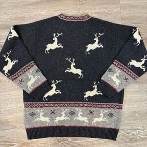 Vintage Woolrich Fair Isle Deer Stag Cabincore Alpine Grey Wool Patterned Cozy M